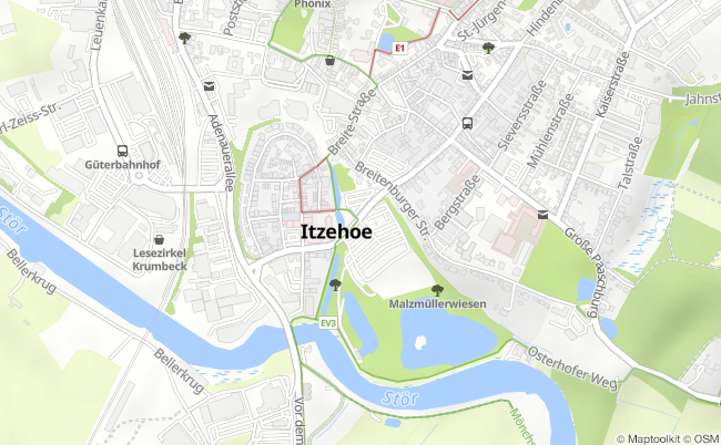 Auf den Malzmüllerwiesen in Itzehoe befindet sich ein gebührenfreier Stellplatz für 10 Fahrzeuge auf dem ebenfalls Hunde erlaubt sind. Der Platz bietet einen Strom- und Wasseranschluss, eine Toilette für Rollstuhlfahrer, sowie einen Ausguss für Chemikalientoiletten. Das nahegelegene Zentrum von Itzehoe, ebenso wie die Stör sind mit einem kurzen Fußmarsch erreichbar.